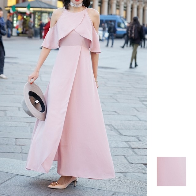 【即納品】段重ねフリルが可愛い♡オフショルダーロングワンピース