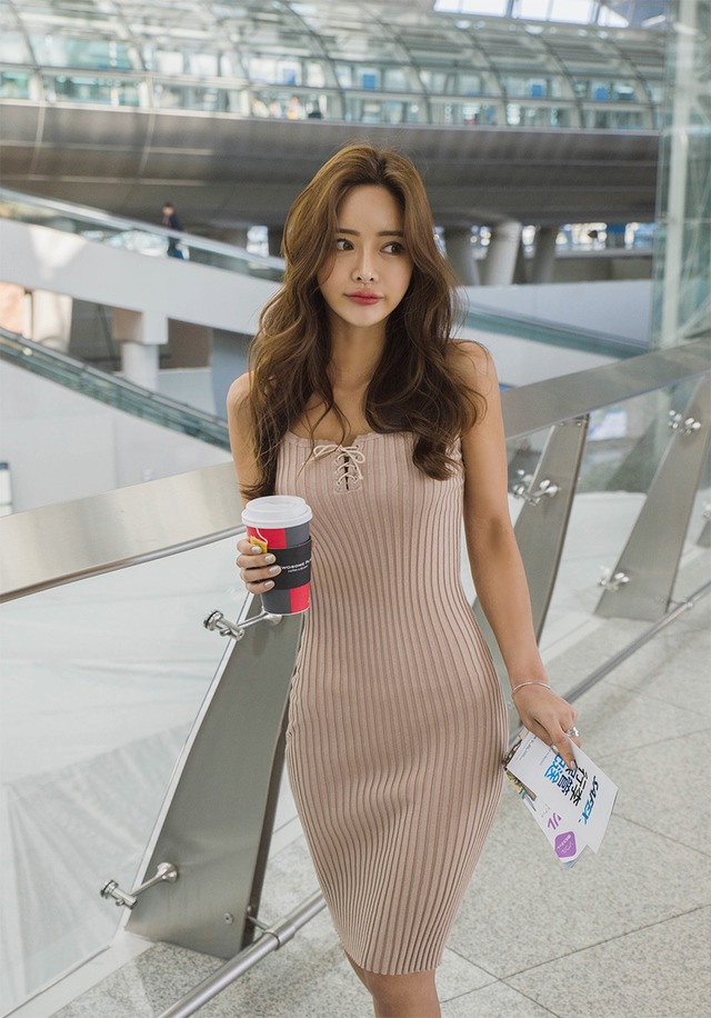 【即納品】人気☆夏旬コーデ☆レースアップ ミディ丈 キャミソールワンピ