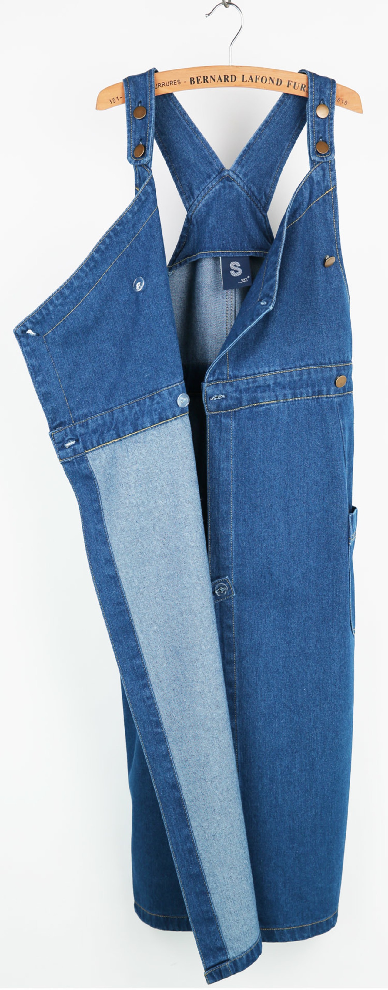 デニム ミドル丈 タイト オールインワン ジャンパー スカート スリット