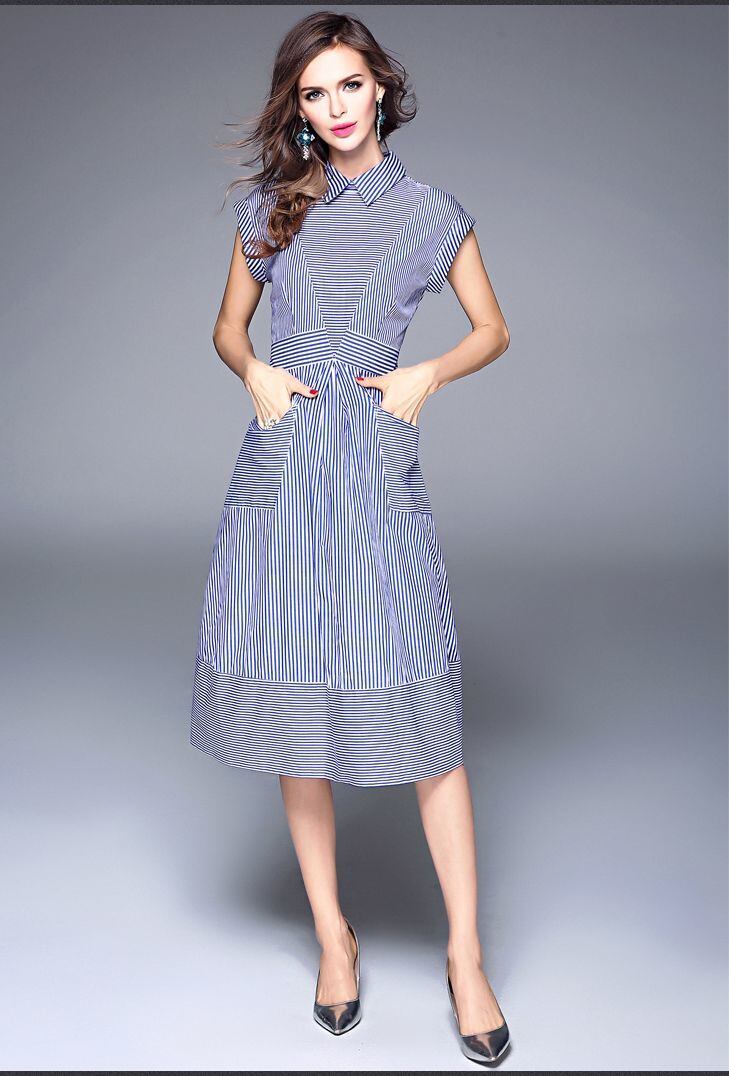 細めのストライプ柄がスタイリッシュな爽やかシャツワンピースです❤