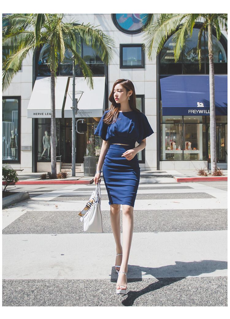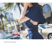 首元のつまった上品さを見せつつもバックのVカットでエレガントさをアピール。