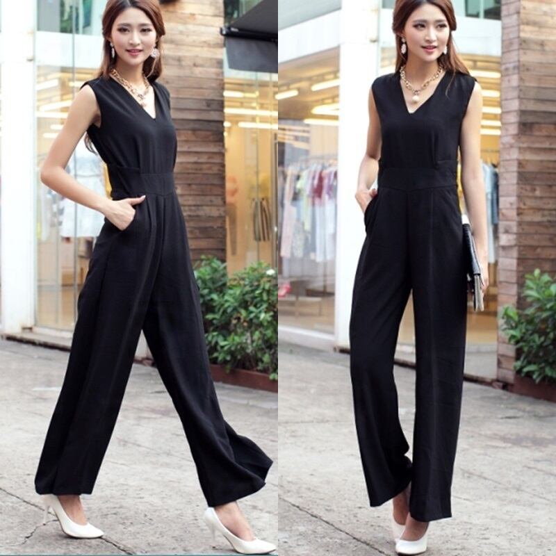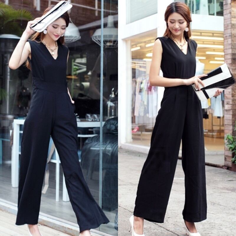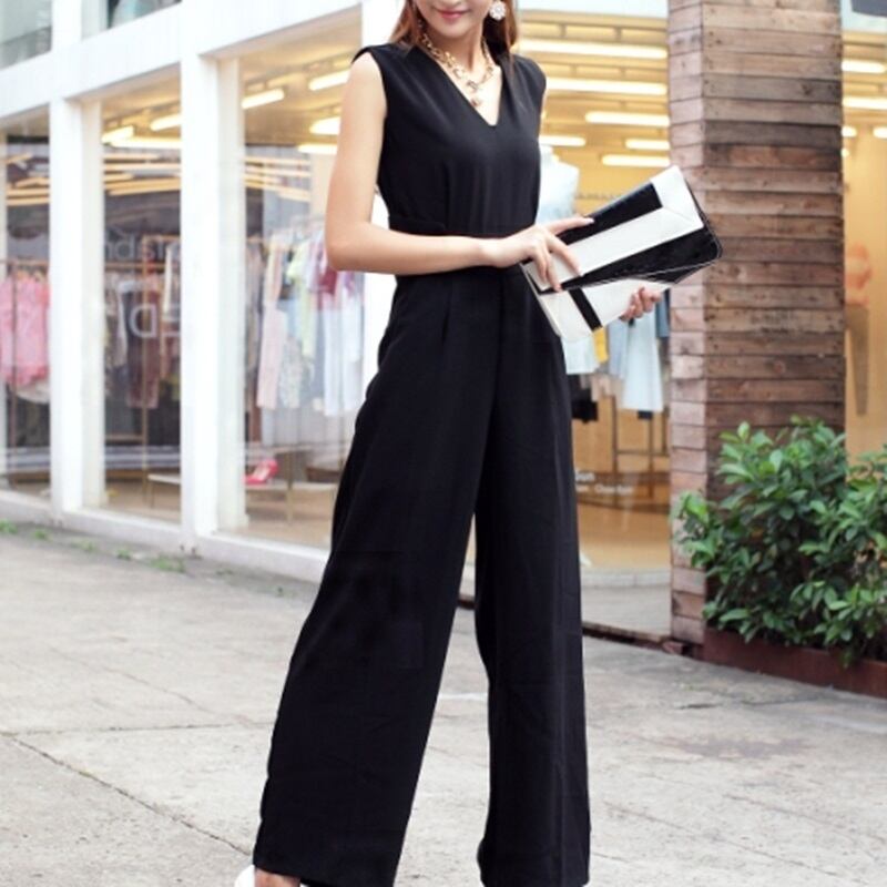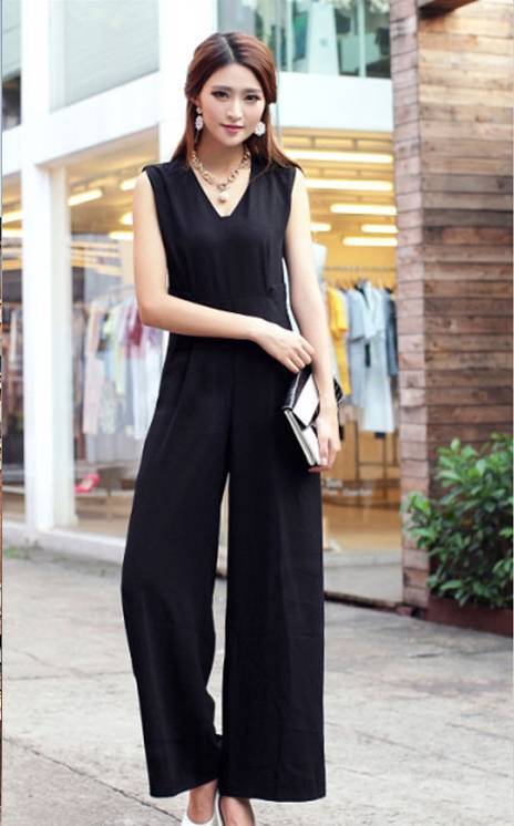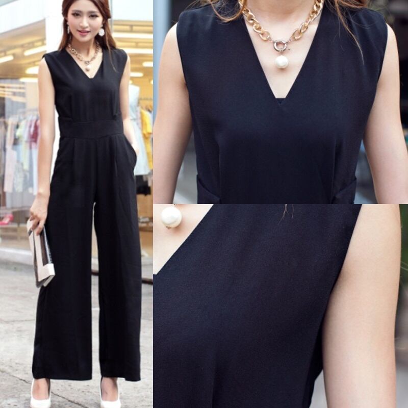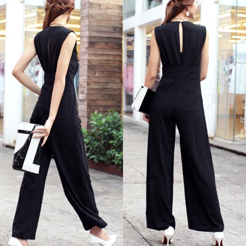 ノースリーブ バックスリット ハイウエスト オールインワン ワイドパンツ