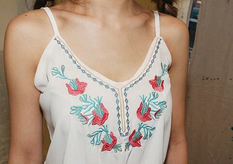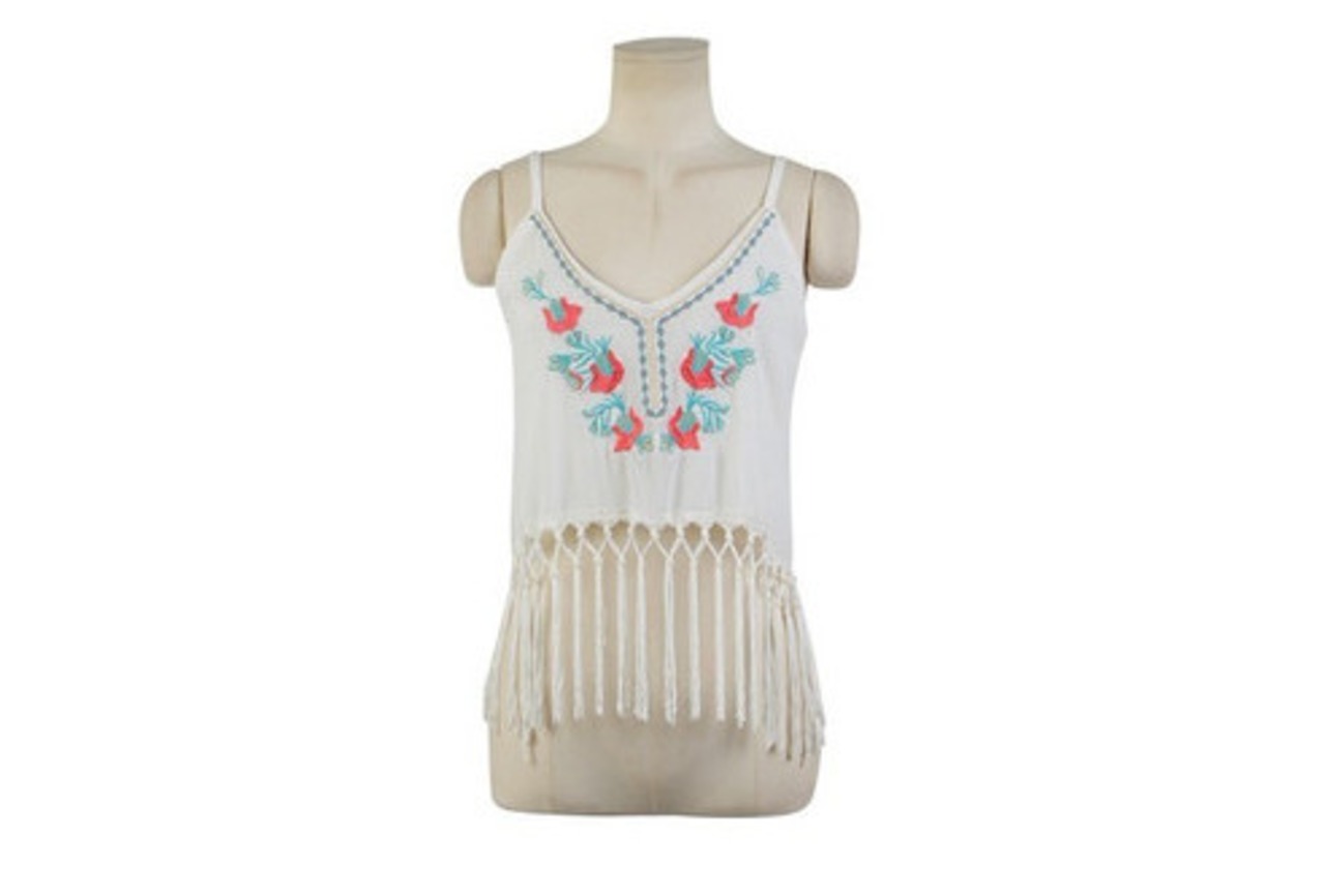 エスニック風の刺繍と裾のフリンジがポイントのビスチェトップス