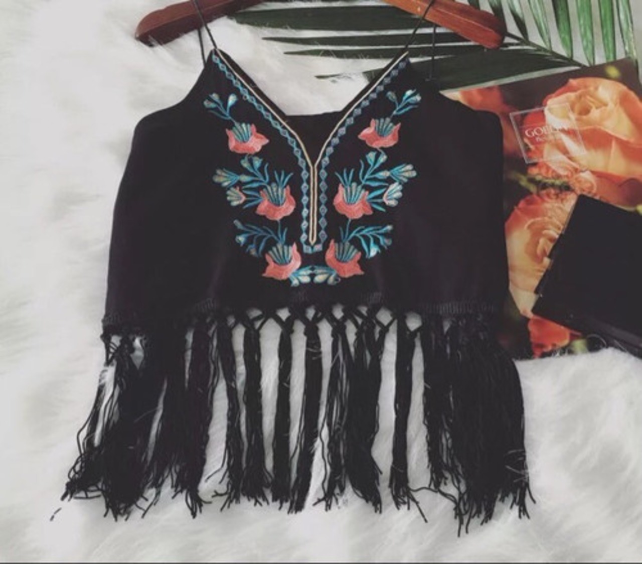 エスニック風刺繍&裾のフリンジがポイントのビスチェトップス☆