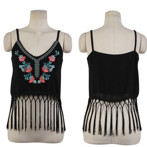フォークロア フラワー 刺繍 フリンジ ビスチェ キャミソール カジュアル