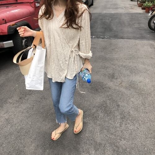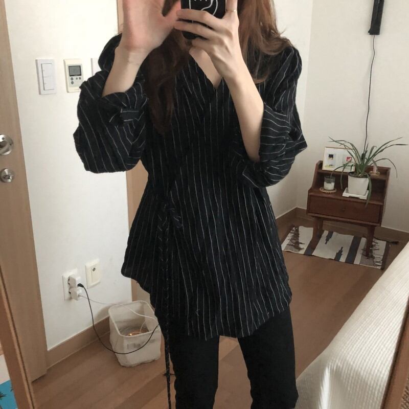 細めのストライプライン柄で縦のラインをキープするシャツが登場しました!