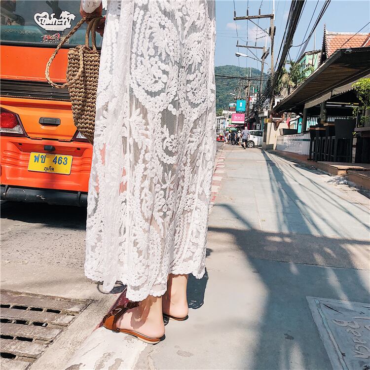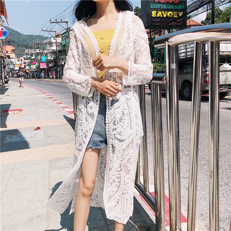 大胆で目を惹くカットワークレースがポイントのロングカーディガンです☆