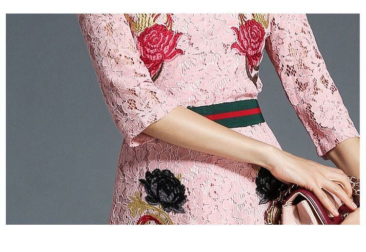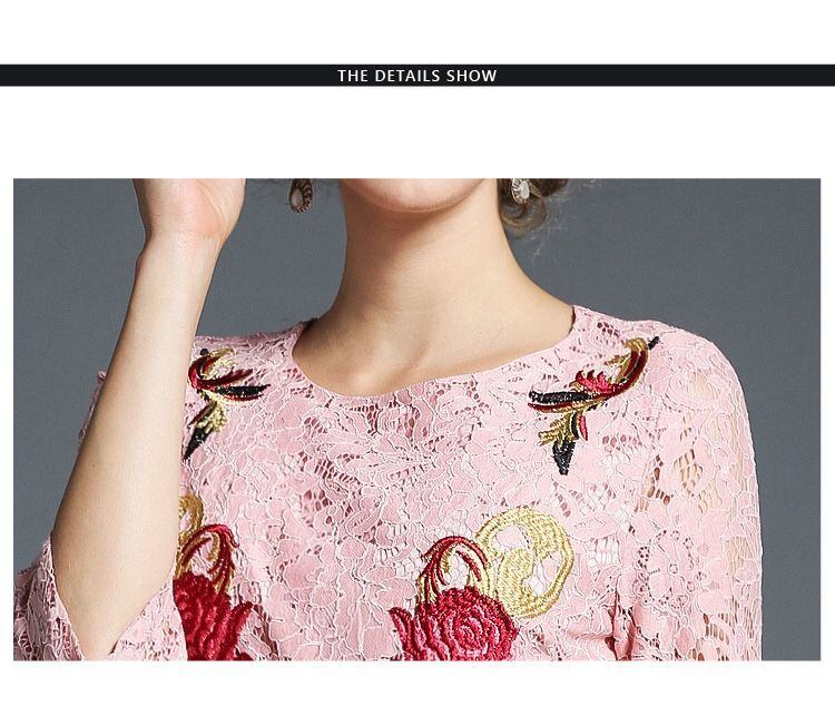 繊細なレース素材をベースに大きめな花柄の刺繍をオン。
