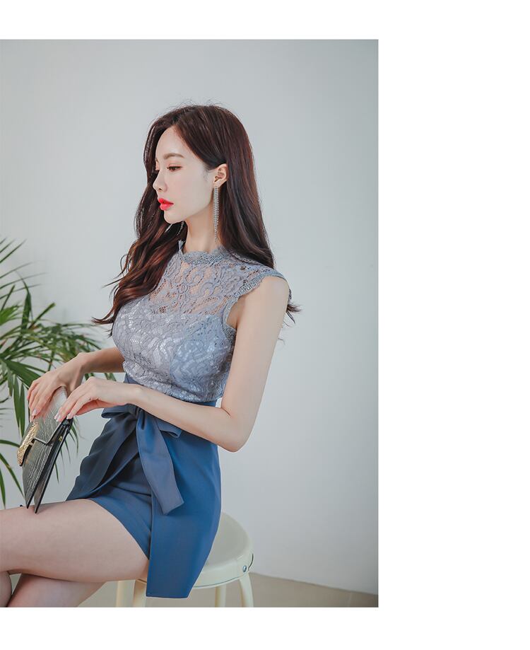 レースハイネックのノースリーブトップスで抜け感をプラス。