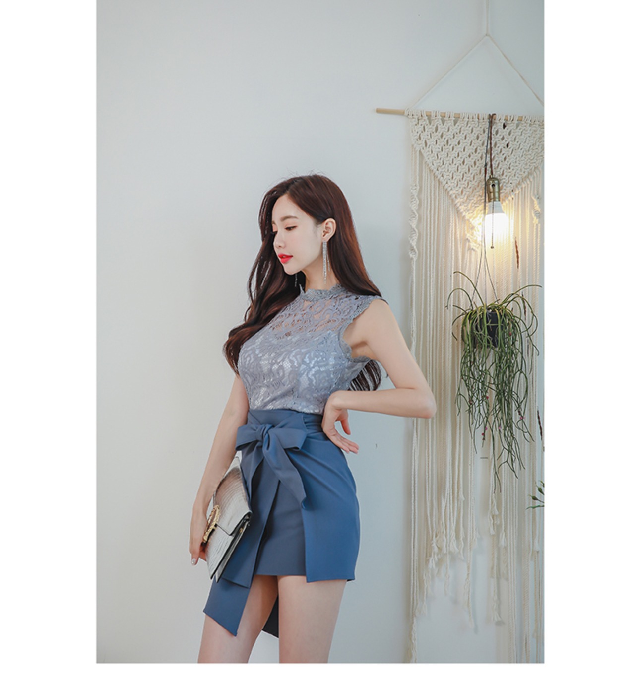 タイトスカートはアシンメトリーな長さとリボンタイで動きのあるスタイルに♡