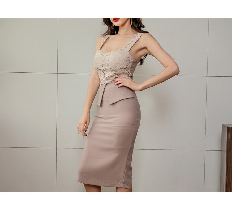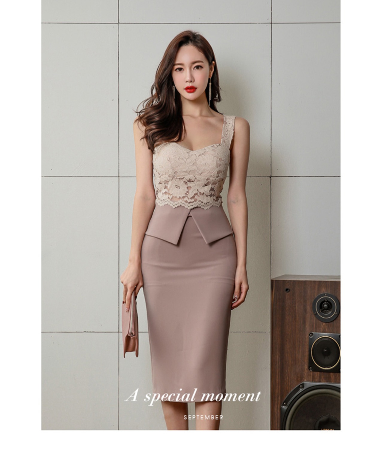 トップス部分をレースで切り替えたペプラムデザインのタイトワンピースです♡