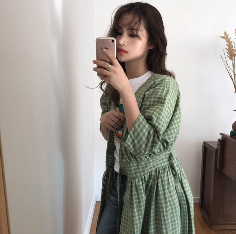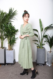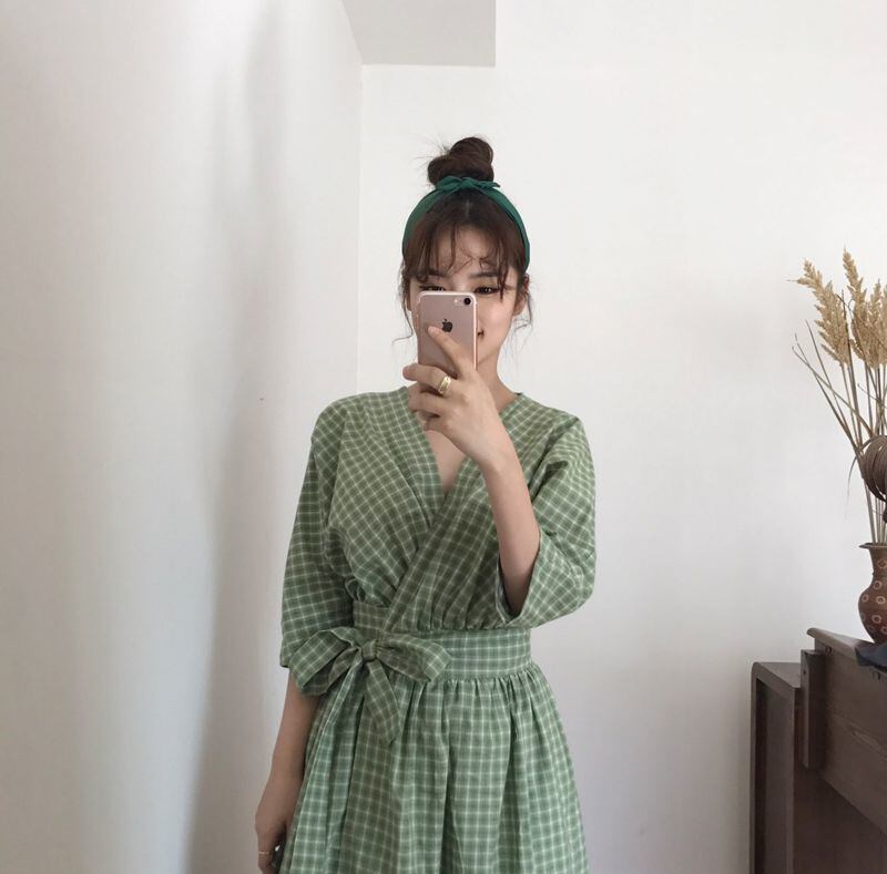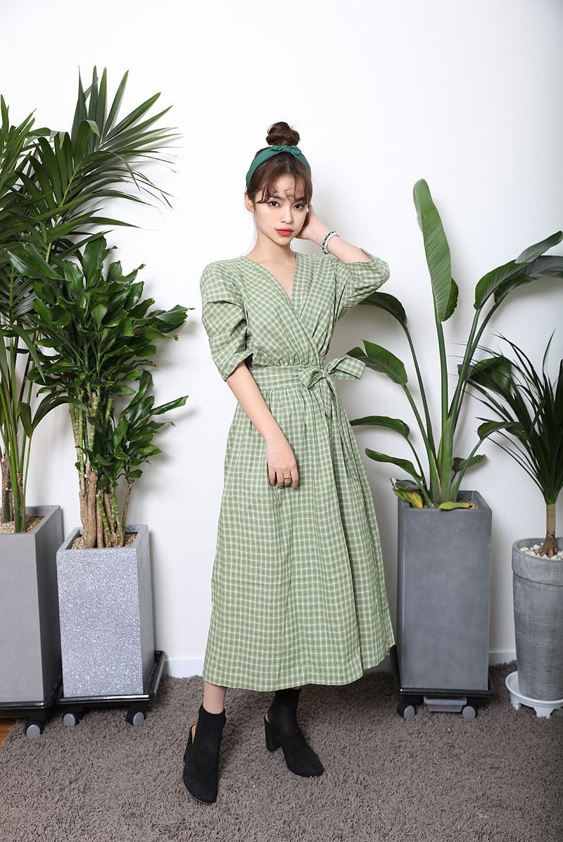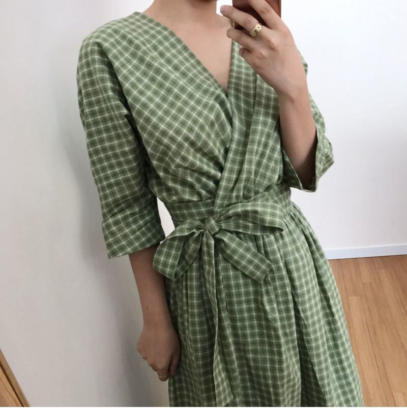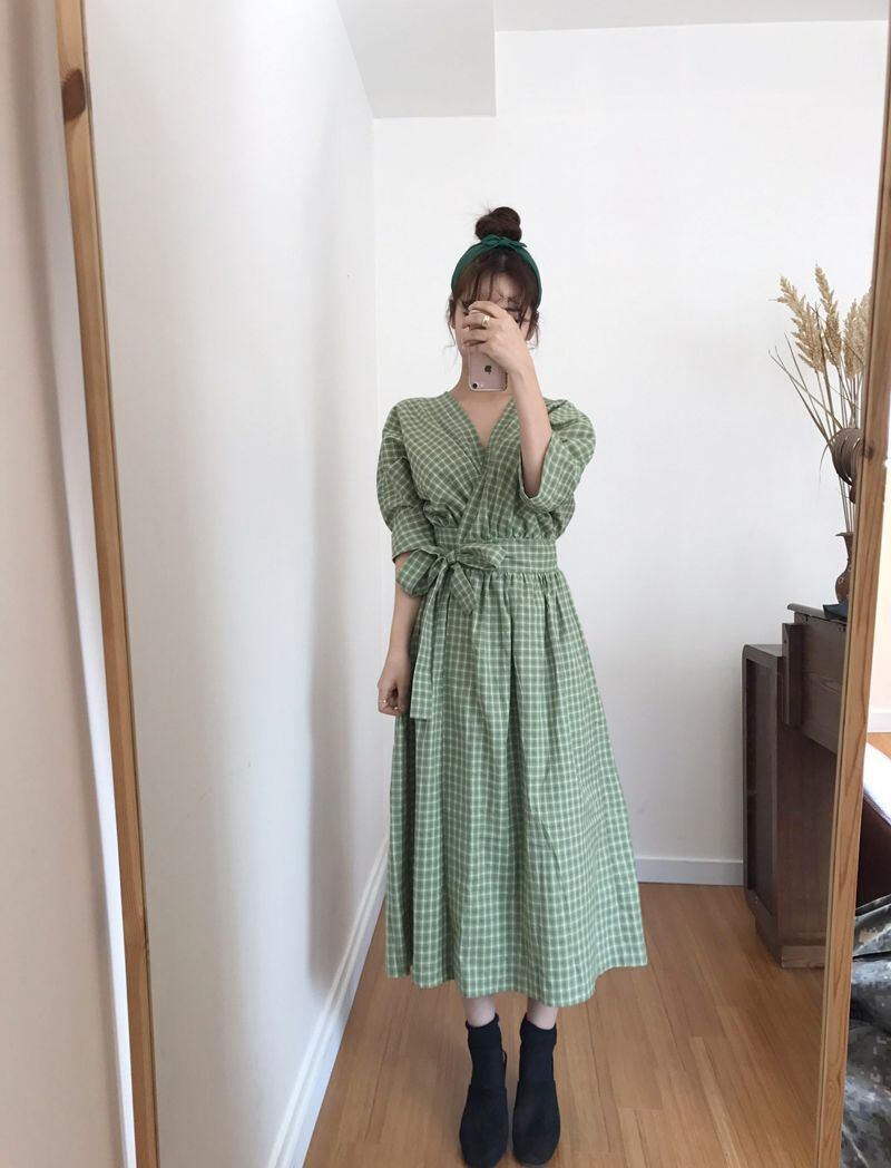 ナチュラルで優しい印象に見せるグリーンが可愛らしいチェック柄ワンピースです☆