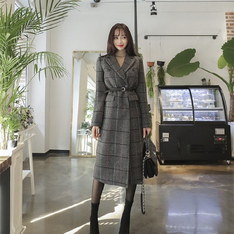 ダークトーンの秋冬チェックをあしらったロングコートが登場しました♪