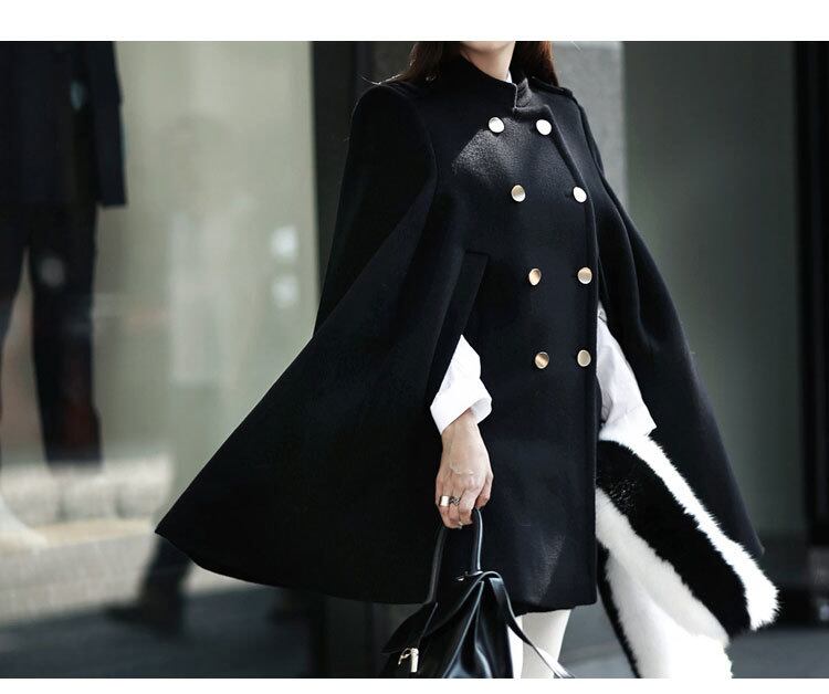 全体をAラインでまとめたエレガントさとハイネックが美しいアウターです♪