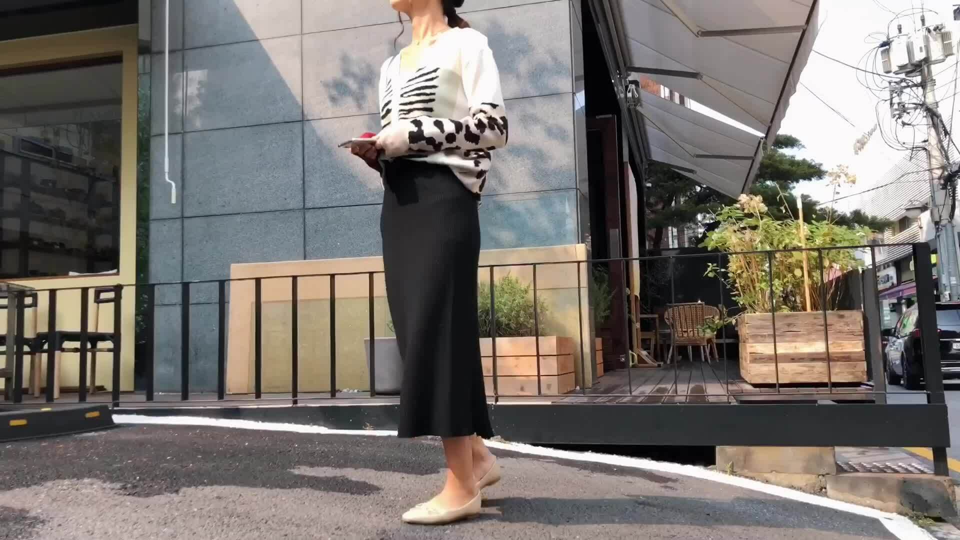 ミモレ丈の上品な丈感が立ち姿を美しく、大人の女性らしく魅せてくれます。