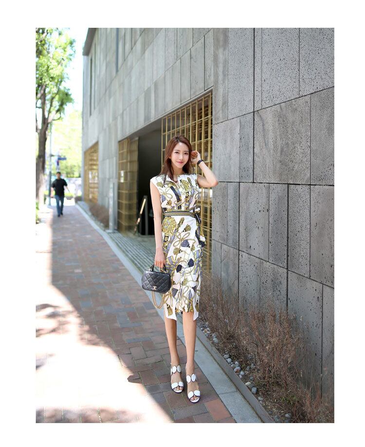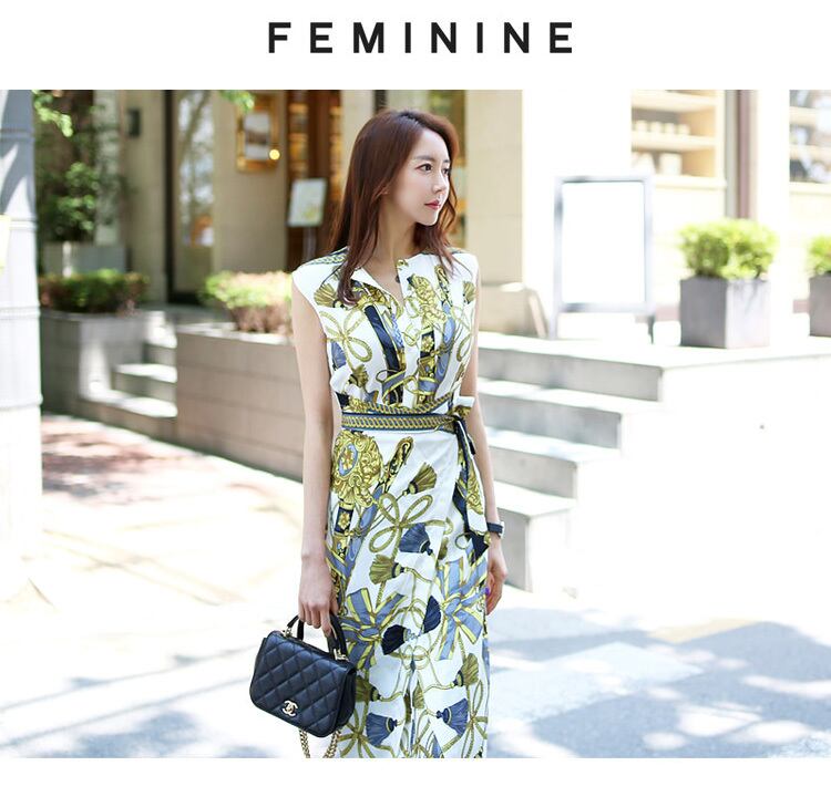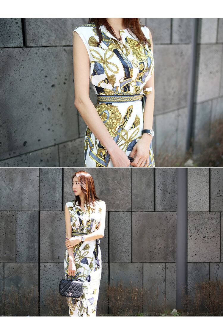 ノースリーブシルエットが綺麗に見せてくれるエレガントな柄ワンピースが登場♡