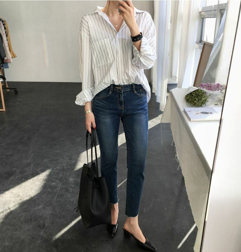 ピンストライプとダブルストライプを組み合わせた長袖のシャツが登場☆