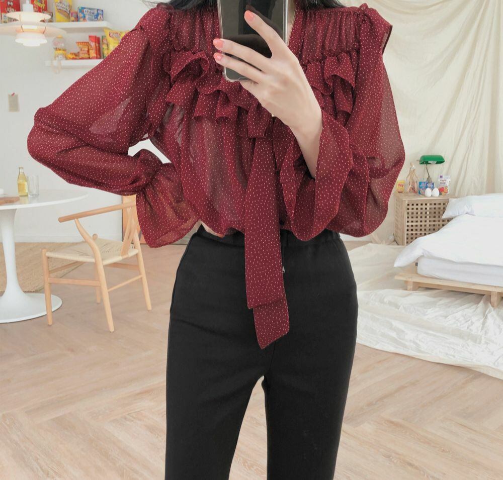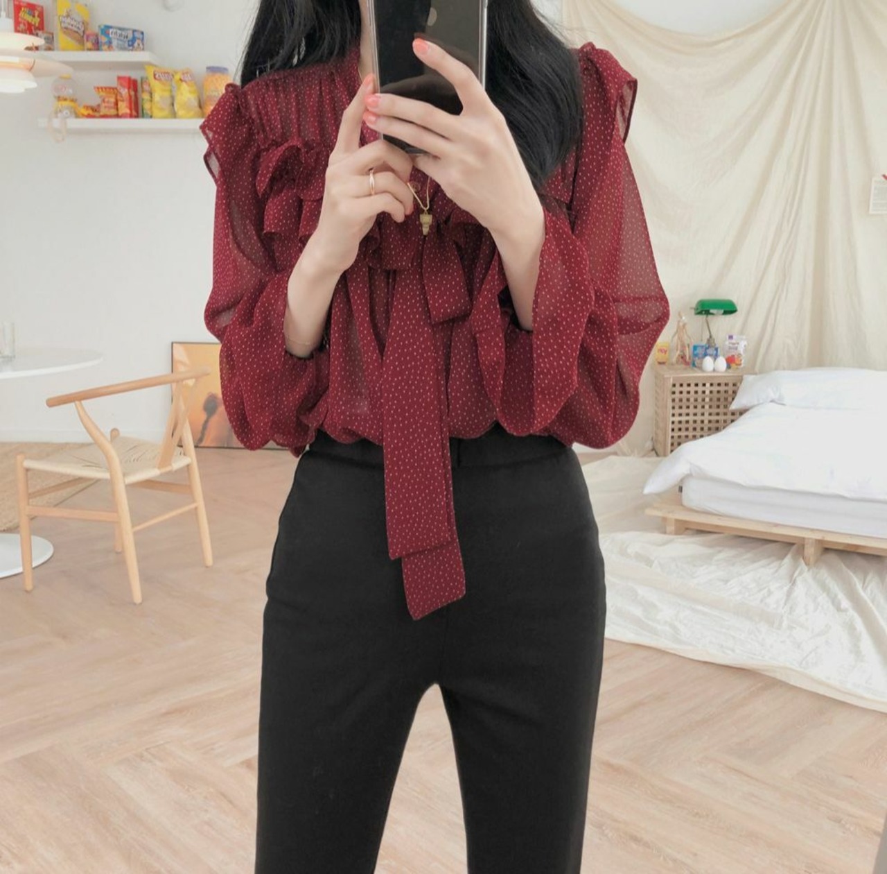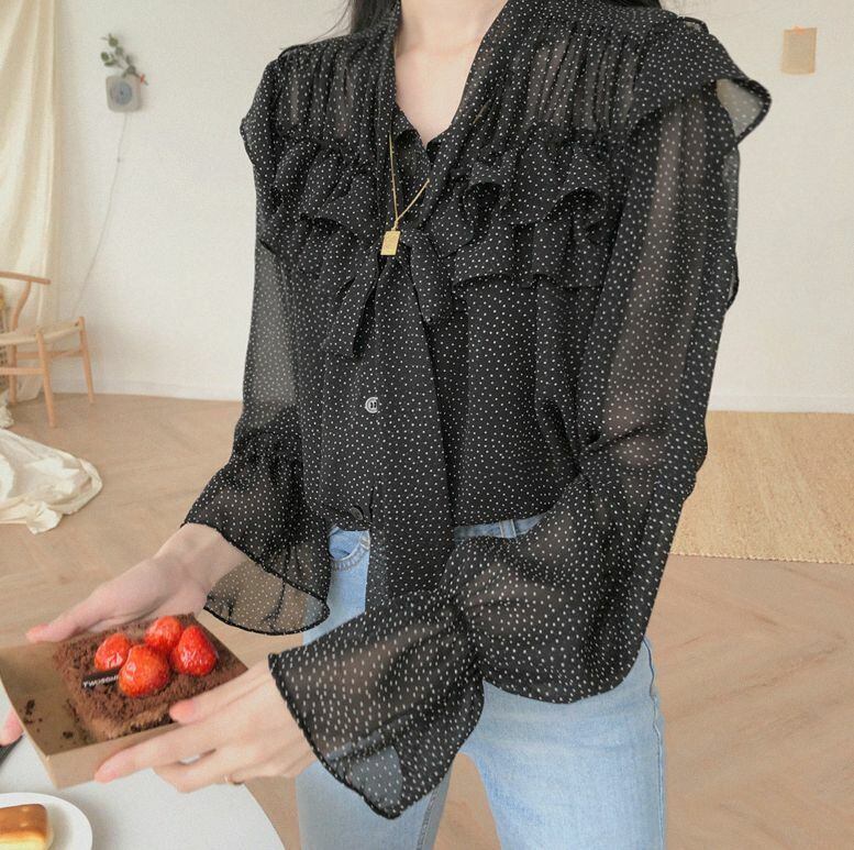 ポルカドット柄を全面にオンしたエレガントなブラウス☆