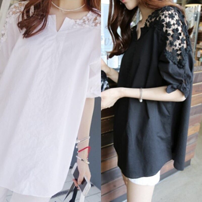 カジュアルなビッグシルエットにレースが入ったプルオーバータイプのブラウスは