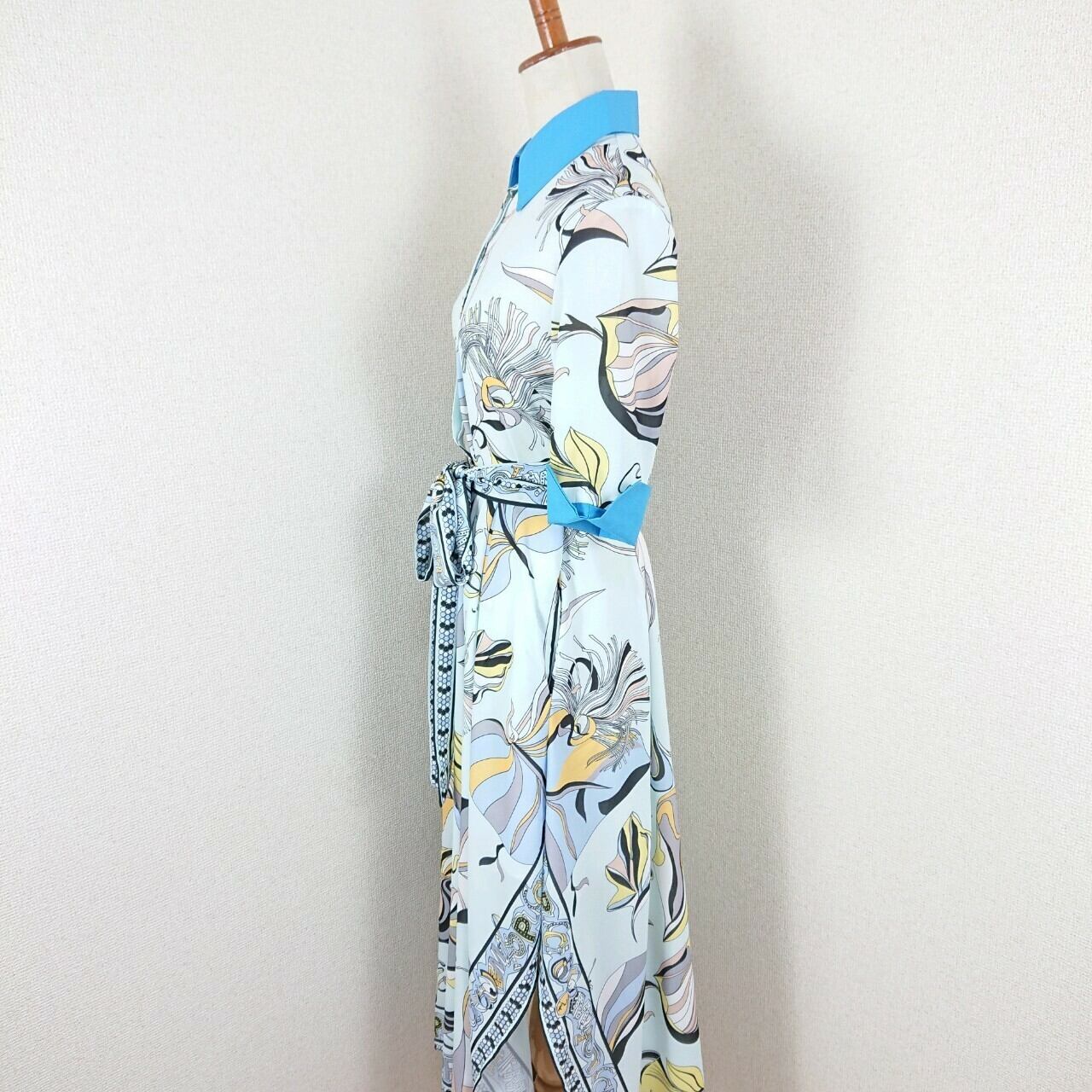 全体をブルーのワントーンでまとめたミモレ丈のシャツワンピースが登場!