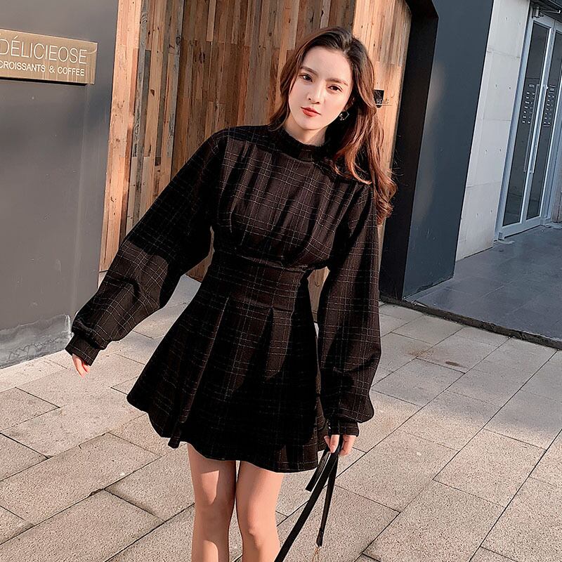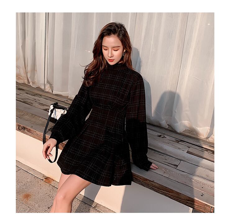 シックなチェック柄を全面にあしらった秋冬のミニワンピース☆