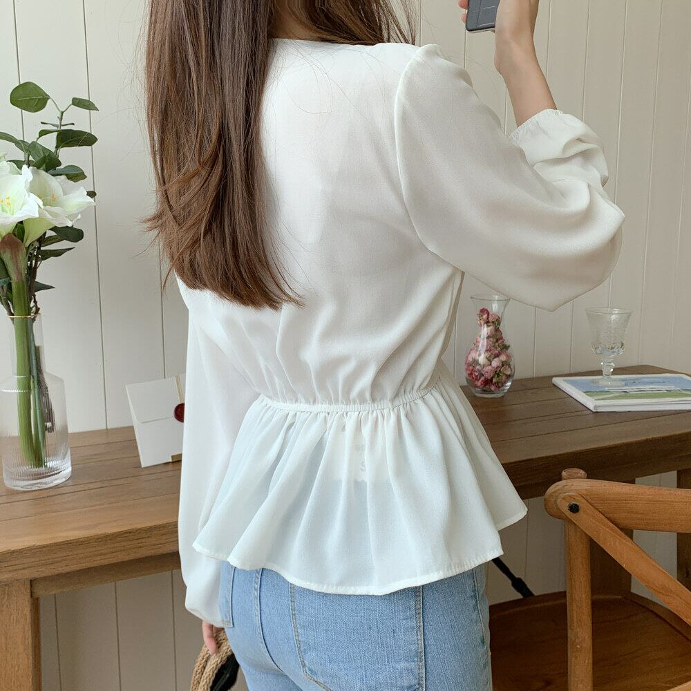 ペプラム裾でウエストカバーができる、大人女子にとって嬉しいデザイン。
