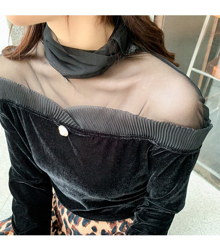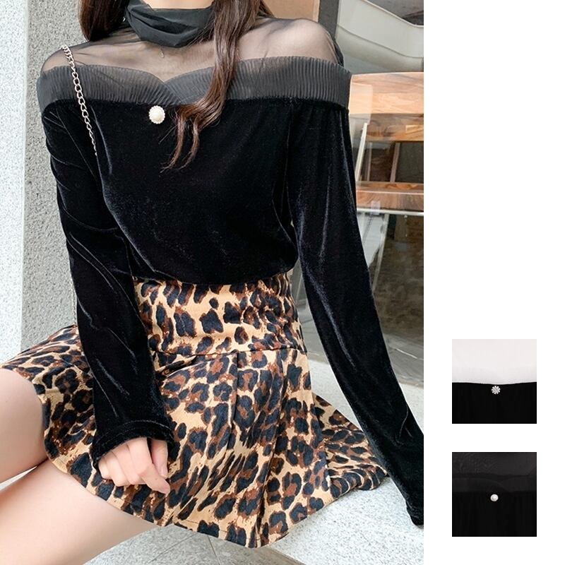 オフショルダー風の透け感たっぷりなラインで女性らしさを強調。