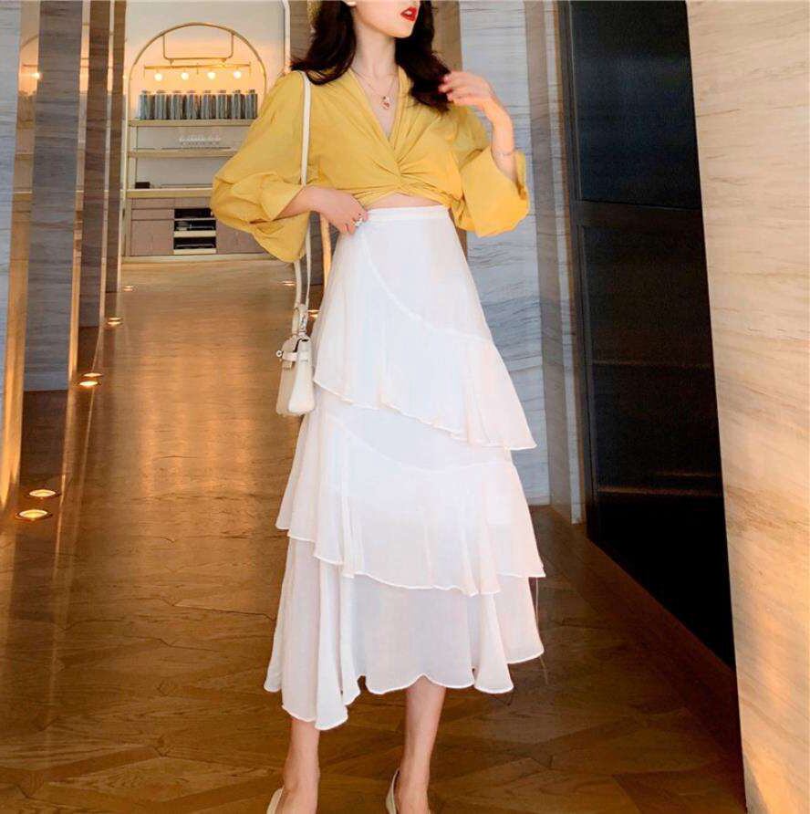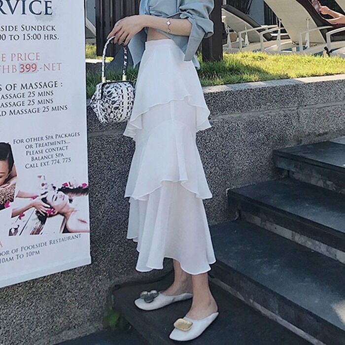 ハイウエストのスカートは段重ねフリルレイヤードがポイントに♪