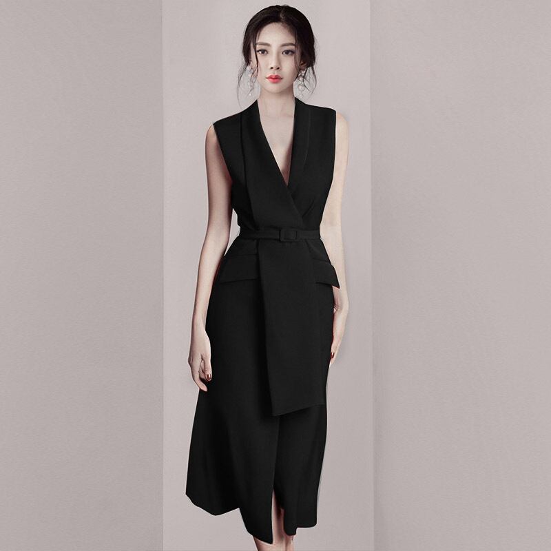 深めのVネックが大人っぽいノースリーブのワンピースが登場!