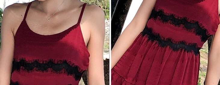 レッド×ブラックのバイカラーで仕上げたミモレ丈のワンピースが登場!