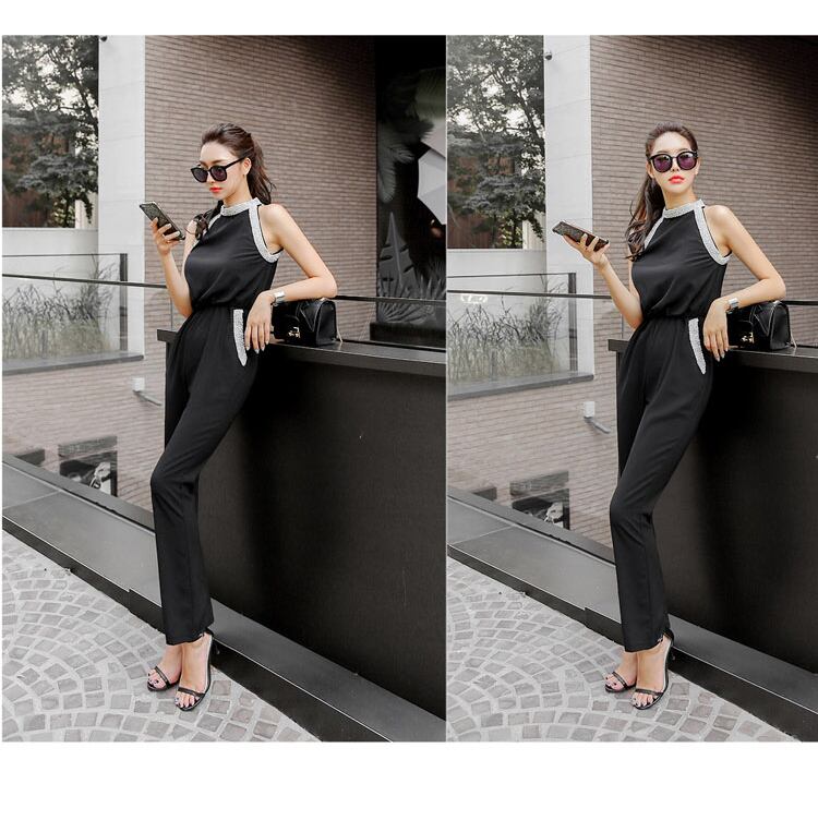 さりげなく煌めくビジューが美しいロング丈のオールインワンが登場♪