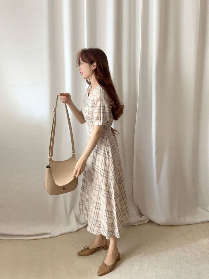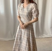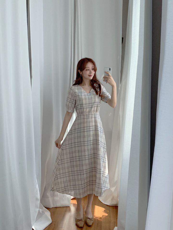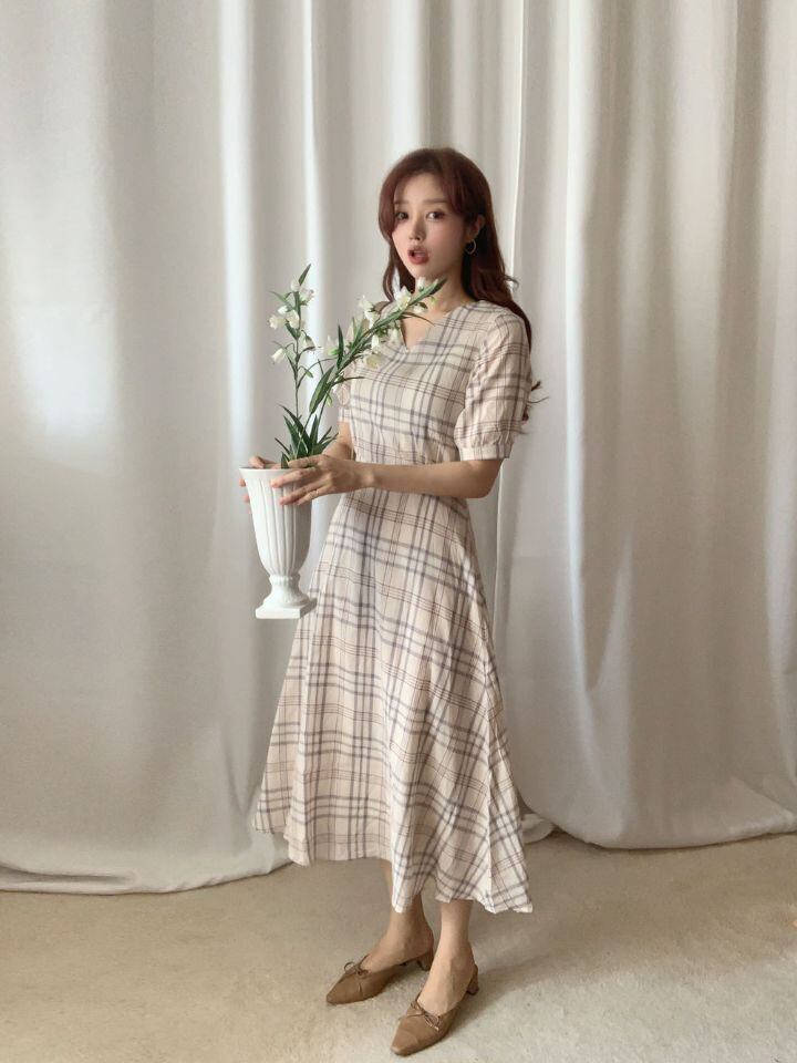 ナチュラルガーリーなチェック柄の半袖ロングワンピースが登場しました!