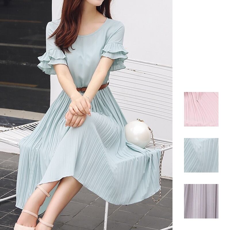 ウエストから広がるプリーツは袖のフリルにもあしらって…♪