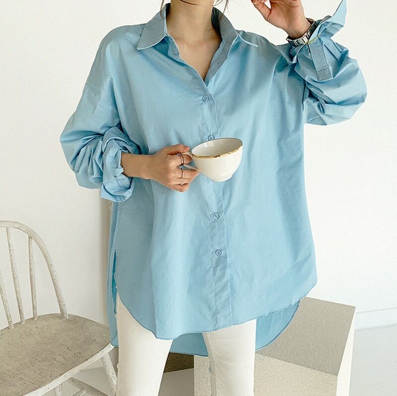 ラウンドテールバックでヒップラインをカバーするシャツ☆