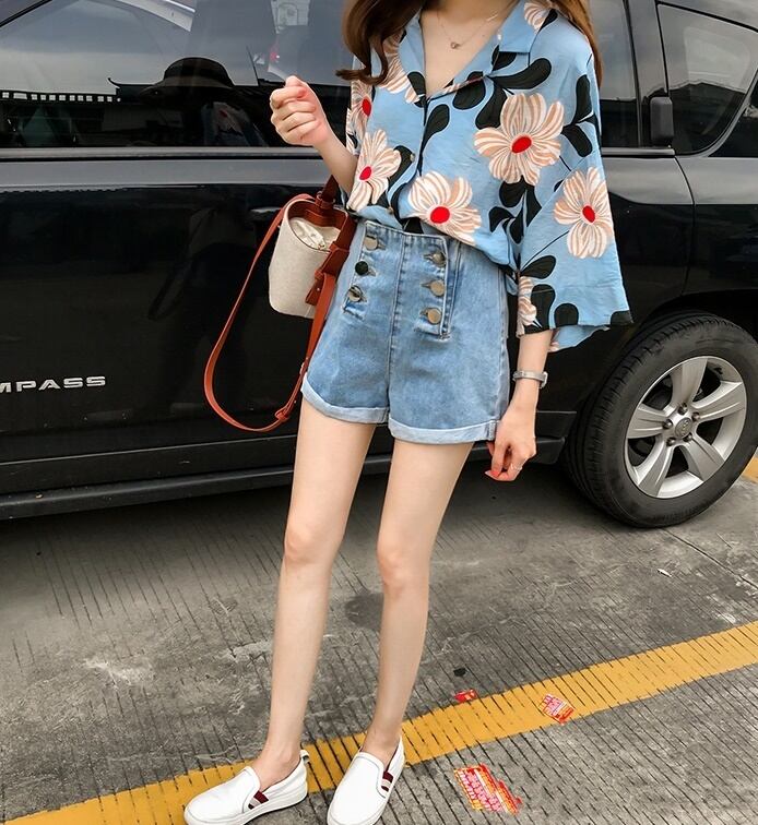 レトロな色使いと花柄が特徴的な大人女子のためのカジュアルトップスです。