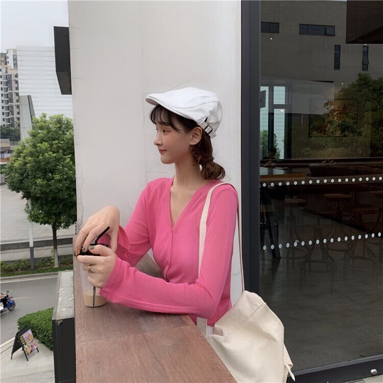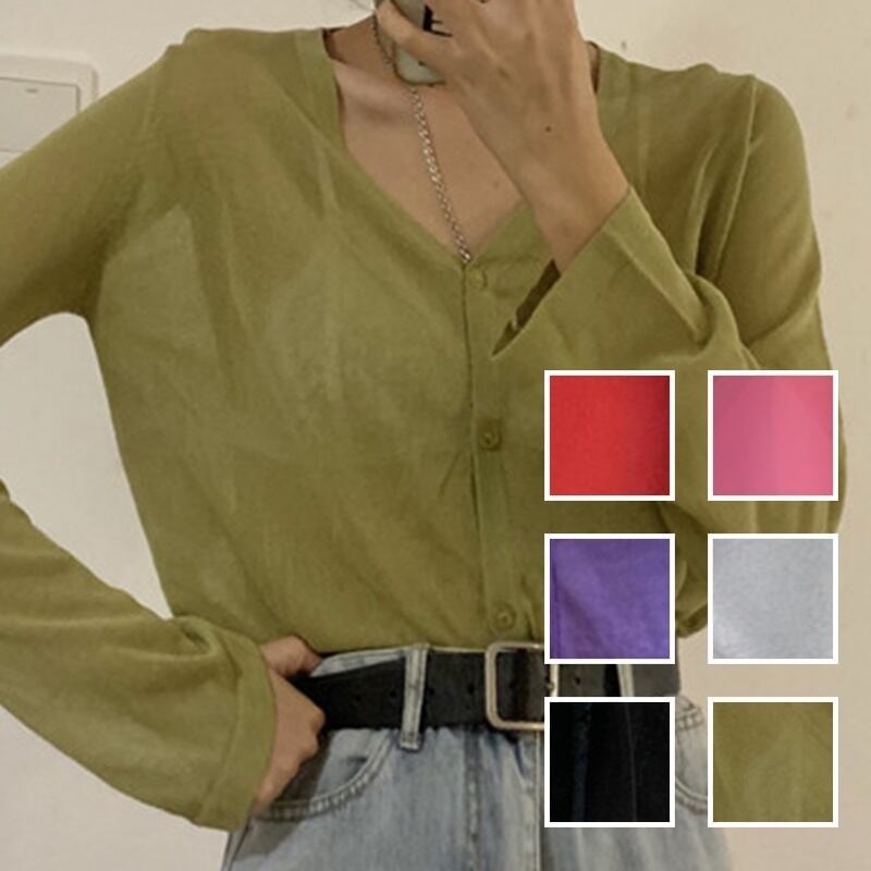 透け感のある薄手素材で日焼け防止のカーディガンにも◎