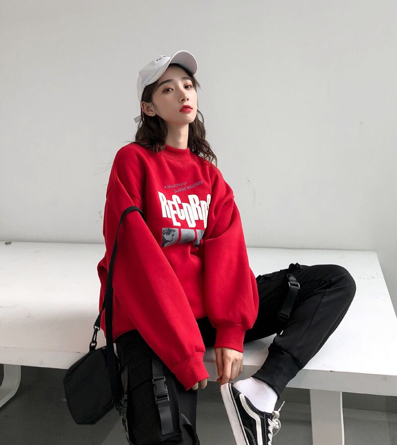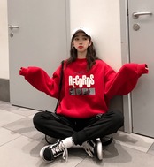 鮮やかなレッドが映える、日常的に着こなせるスウェットトップスです♪
