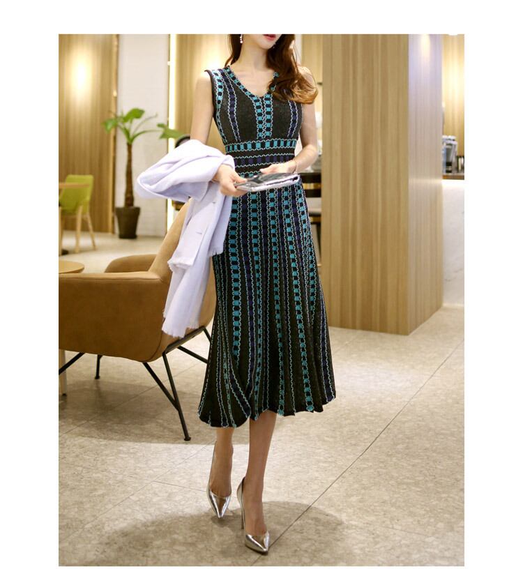 細部までこだわったデザインストライプのミモレ丈ワンピースです。