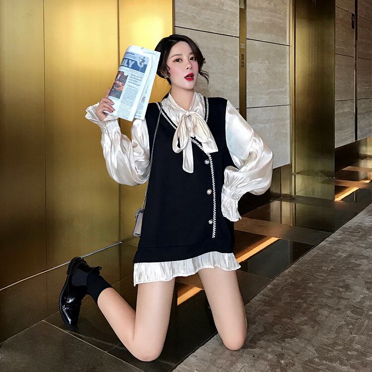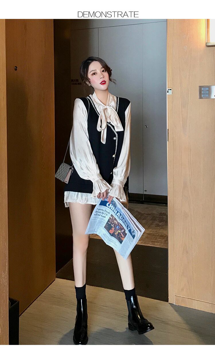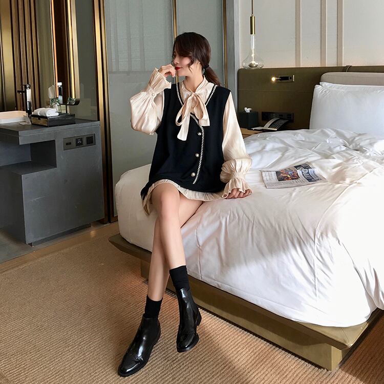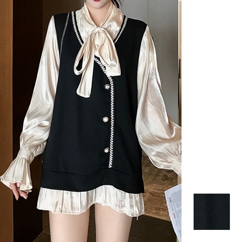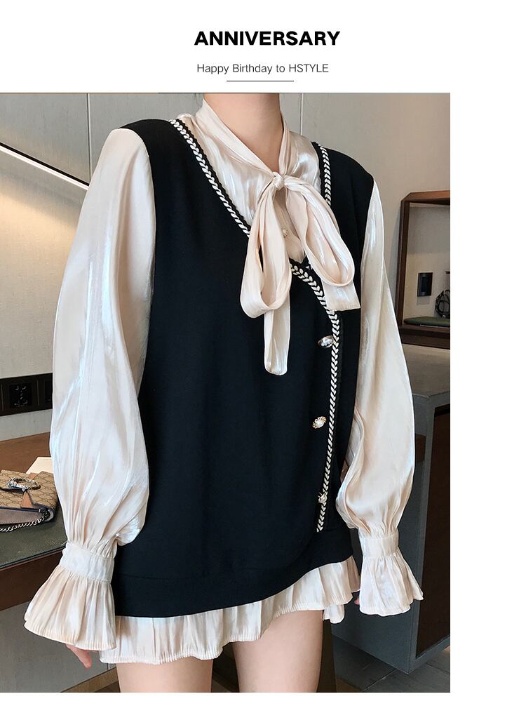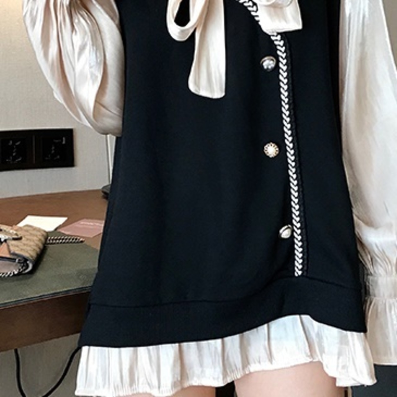 ベストをレイヤードしたようなプレッピーさとフリルのクラシカルさがマッチ。