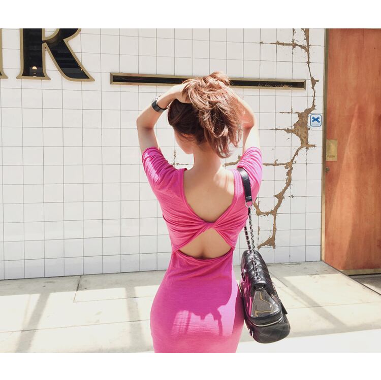 シンプルな無地デザインでディティール映えするタイトワンピース。