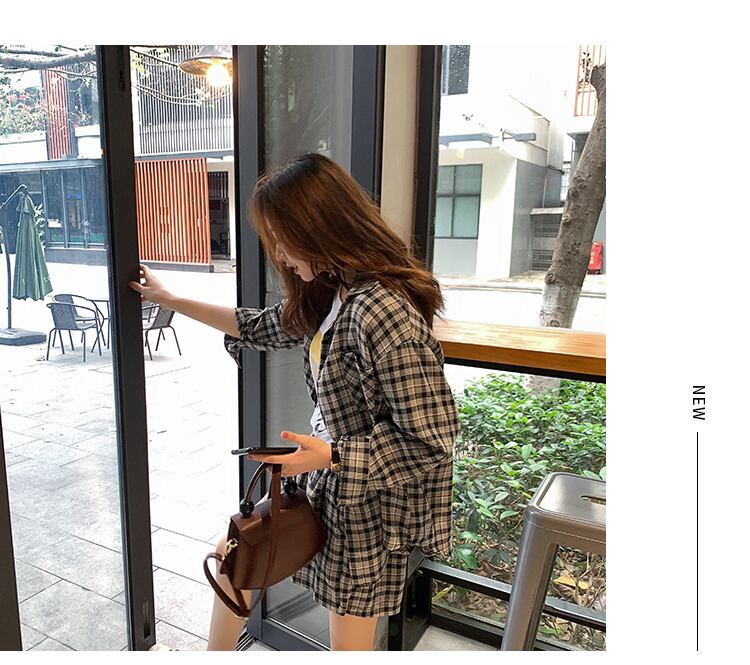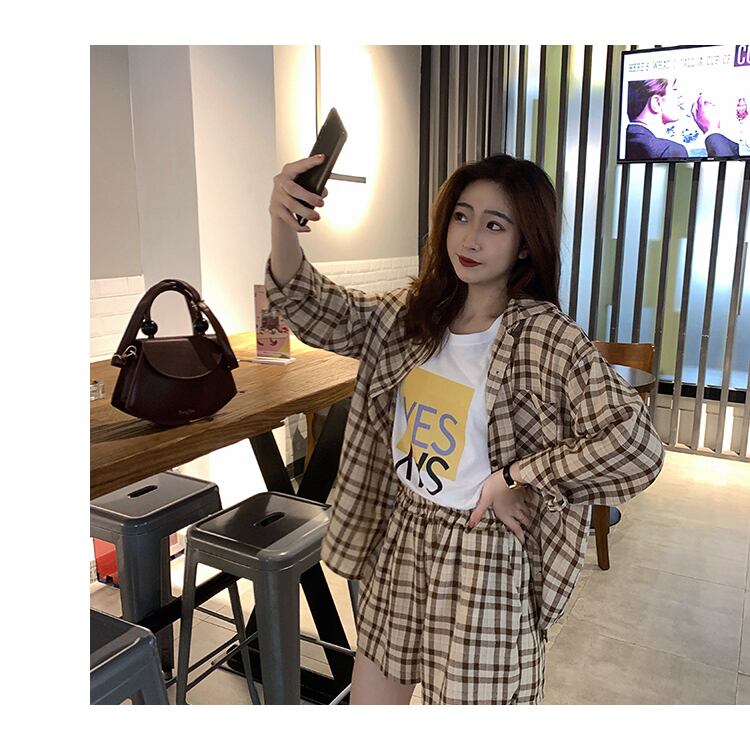 レトロチェック柄のシャツとショートパンツのセットアップ◎
