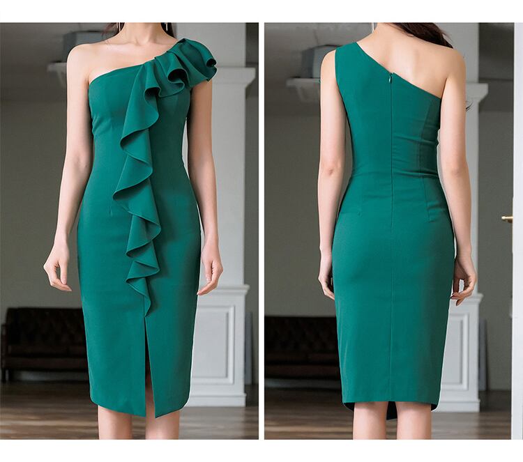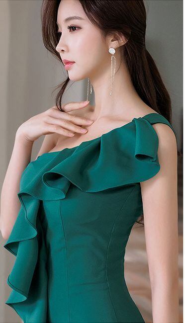 縦のラインにあしらったフリルが脚長効果を出すおよばれワンピです!