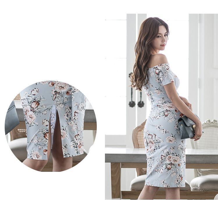 花柄とオフショルダーで女性らしさを多方面にアピール。