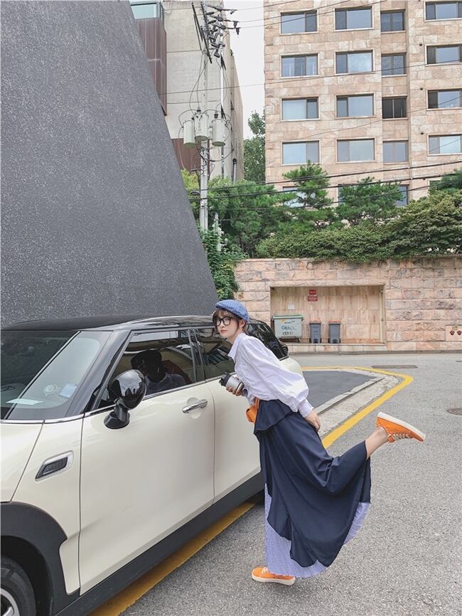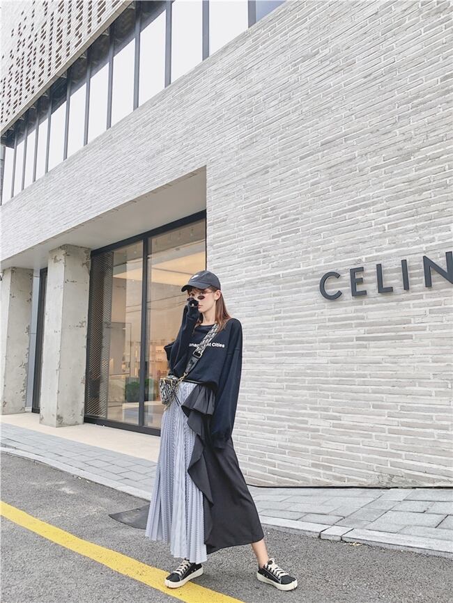アシンメトリーな切替デザインでおしゃれな印象に。