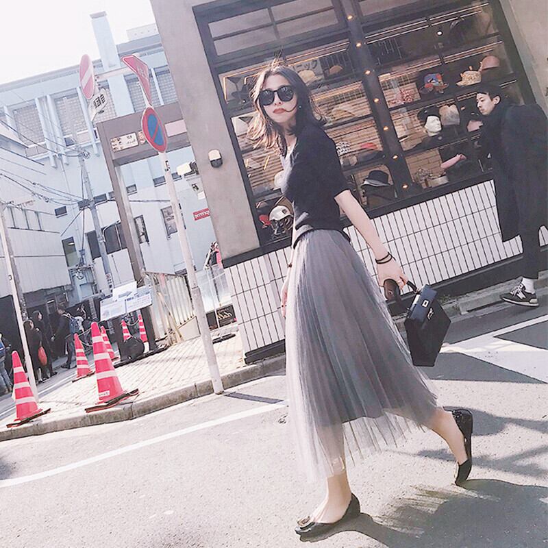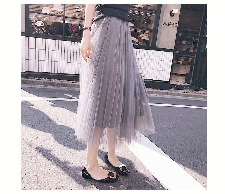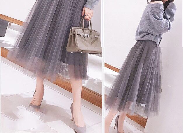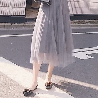 スモーキーなグレーで甘さを抑えたミモレ丈のスカートです♪