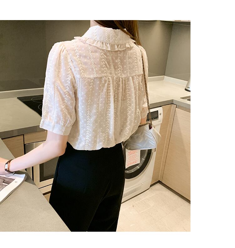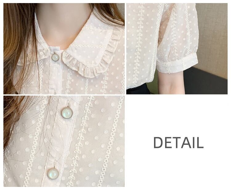 襟のラインにフリルをあしらったクラシカルな半袖ブラウスです♪