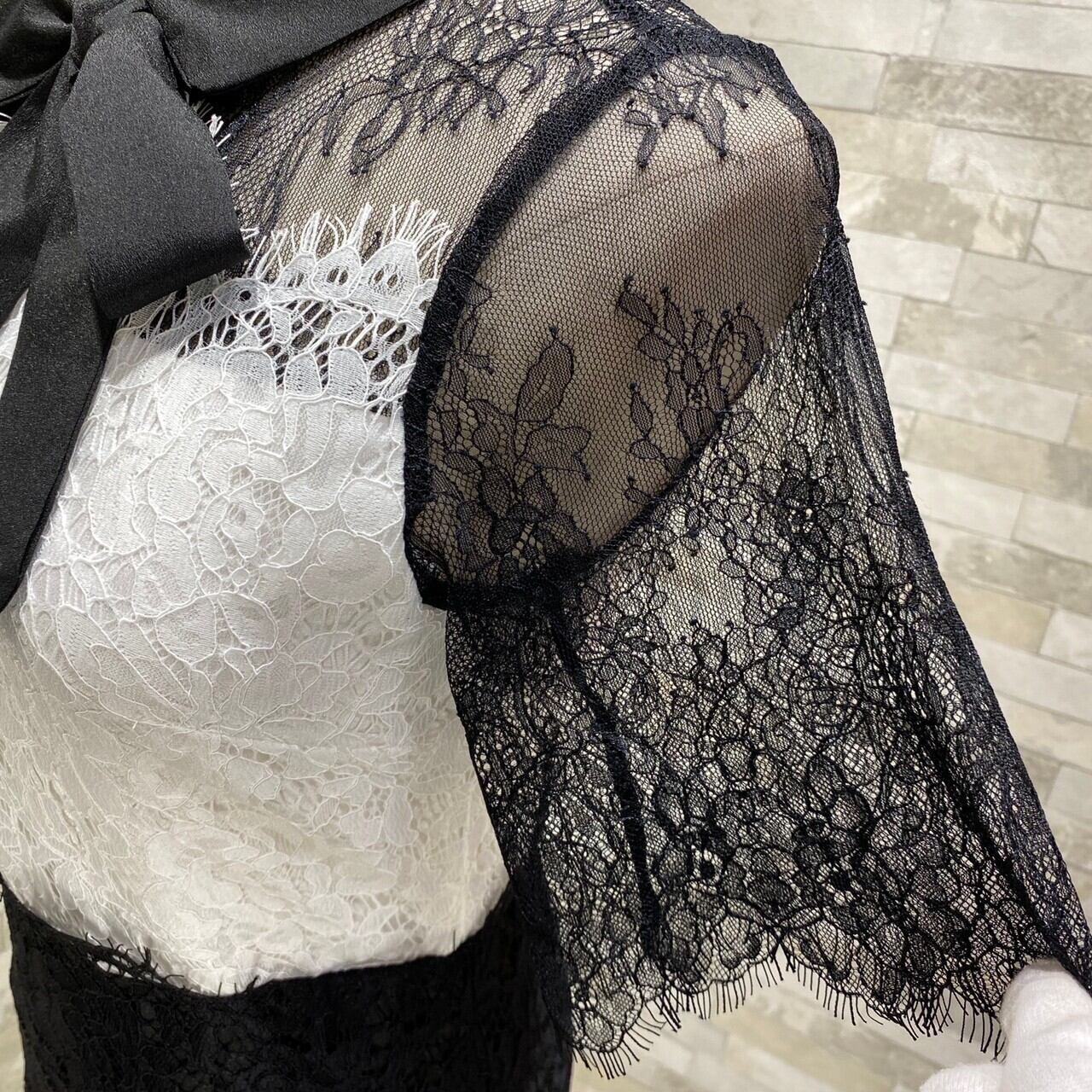【即納品】モノカラー 総レース リボン 半袖 タイトミニワンピース