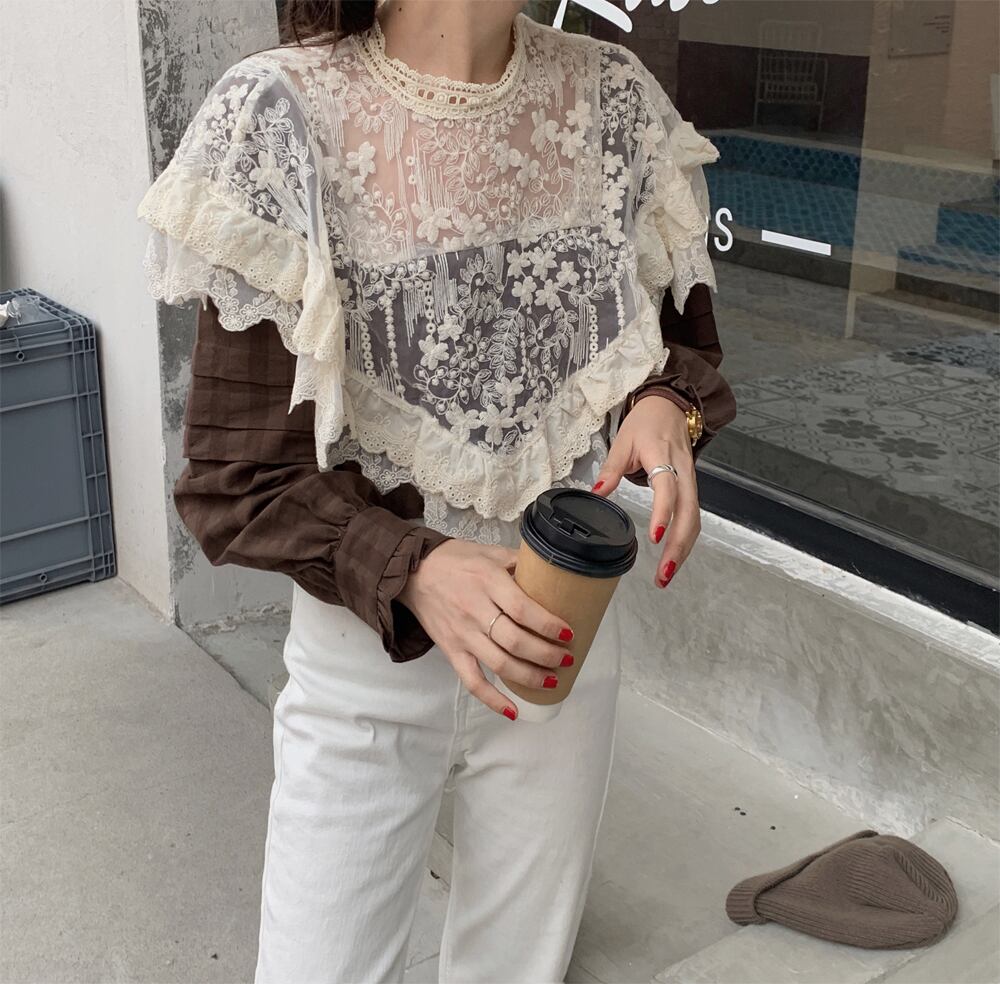 ふんわりとレースを重ねた長袖のデザイントップスが登場しました。