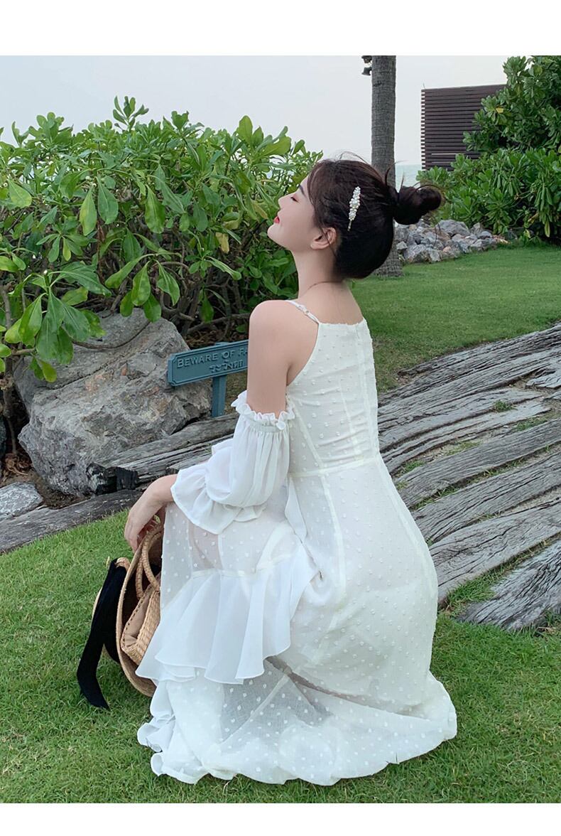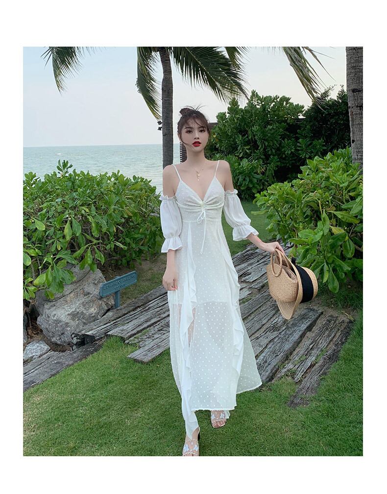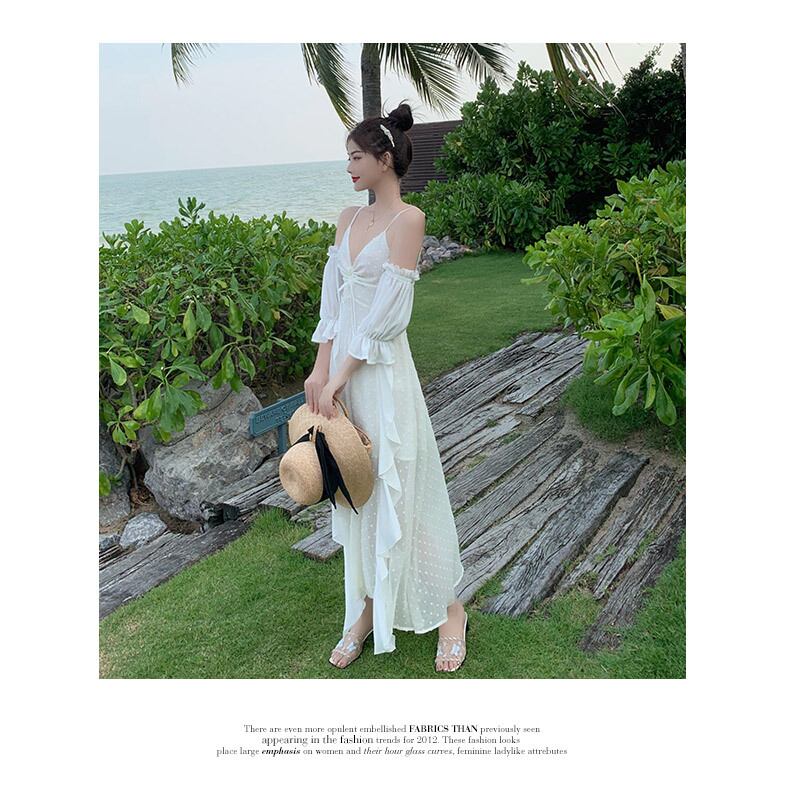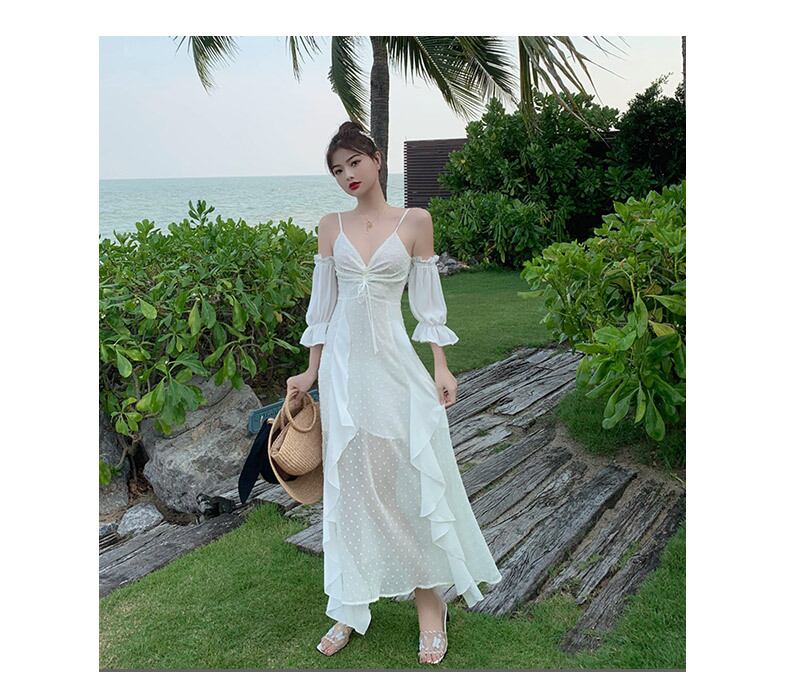 風になびくフリル使いか効いたスカートが夏らしいおすすめのオフワンピです!