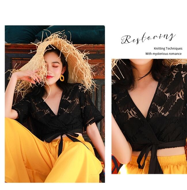 オールレースで繊細なディティールを見せるショート丈トップスです!